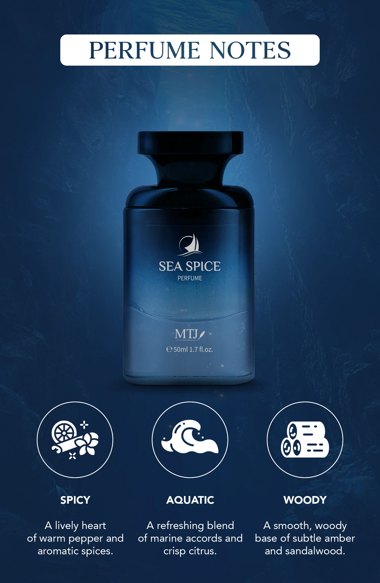 Sea Spice is more than just a fragrance; it captures the essence of nature's elements, empowering the wearer with confidence and a sense of adventure. Embrace exploration and sophistication with Sea Spice, an essential addition to any modern man’s collection.
